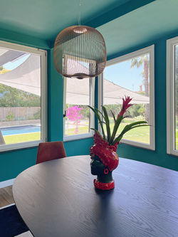 Abbiamo curato con passione e precisione ogni fase della ristrutturazione di questa splendida villa immersa nel verde, lontana dal rumore urbano e completamente avvolta dalla quiete della natura. Un progetto che unisce eleganza moderna e anima autentica, in un perfetto equilibrio tra architettura e paesaggio. L'intervento ha interessato ogni aspetto della proprietà: dalla progettazione del giardino alla realizzazione di una nuova piscina, incorniciata da palme e cipressi, che regala un’atmosfera rilassante e mediterranea. All'interno, la villa si apre su spazi luminosi e finemente arredati, dove design contemporaneo, elementi etnici e dettagli classici dialogano in modo armonico. I materiali naturali come il travertino e il legno sono protagonisti, donando calore ed eleganza agli ambienti.